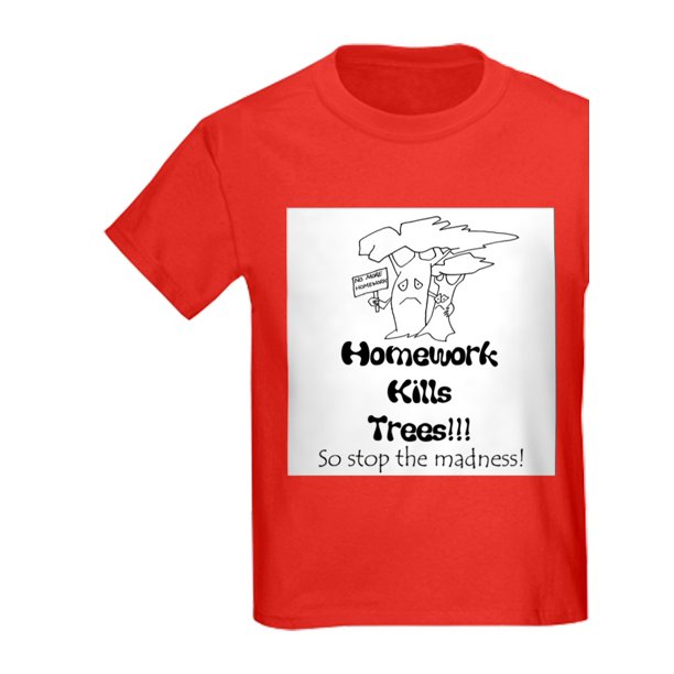 Shop Homework kills trees T-Shirt created by _Me_myself_and_I_. Shop homework kills trees t-shirts created by independent artists from around the globe. It came as a hand-me-down from friends and.
